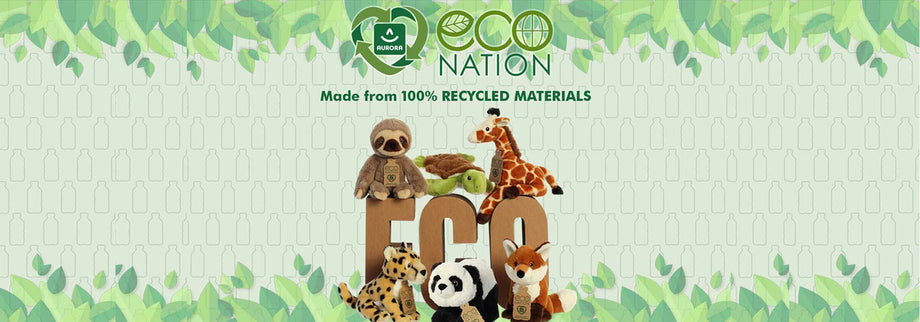 Eco-friendly plush toys are made from sustainable materials like organic cotton and recycled polyester.